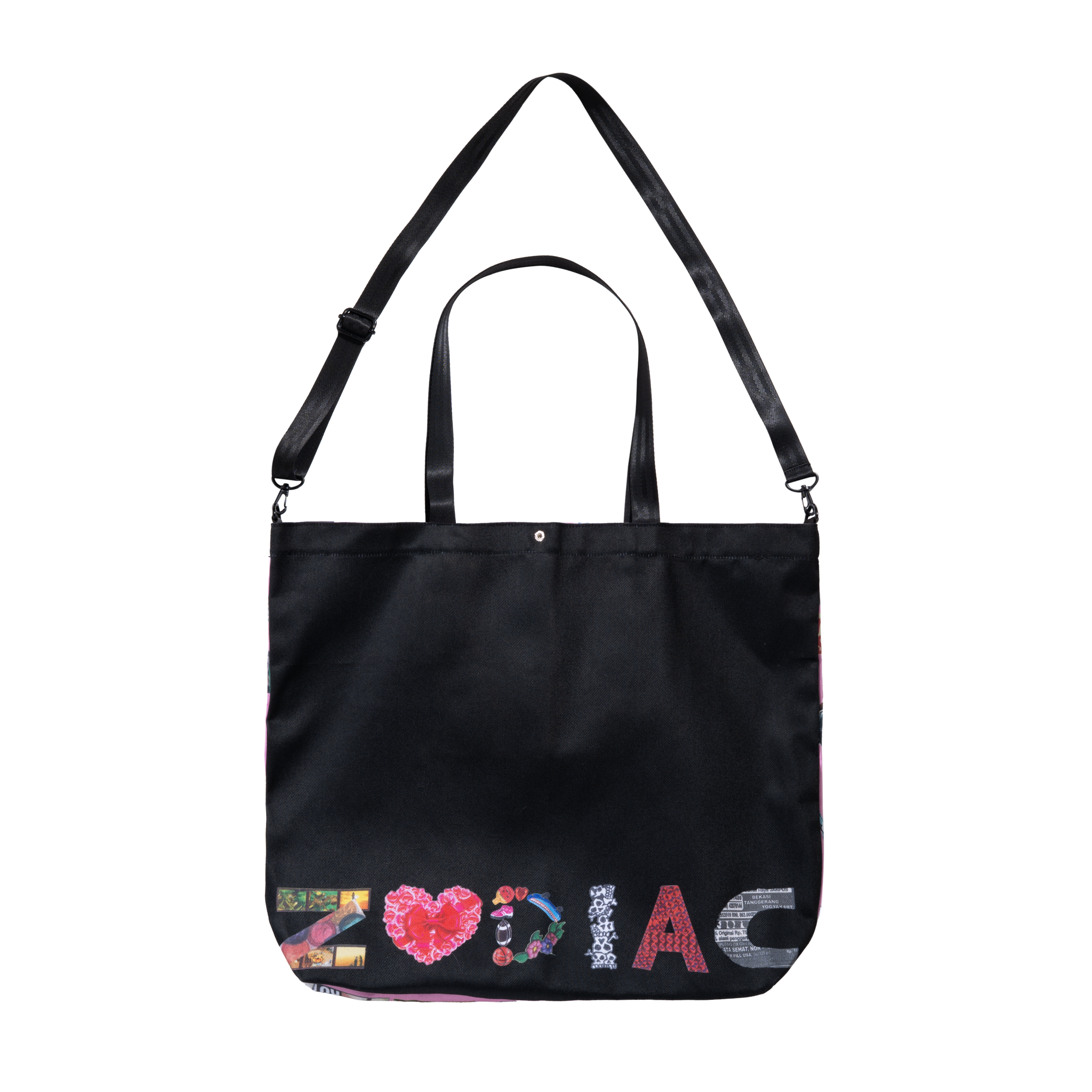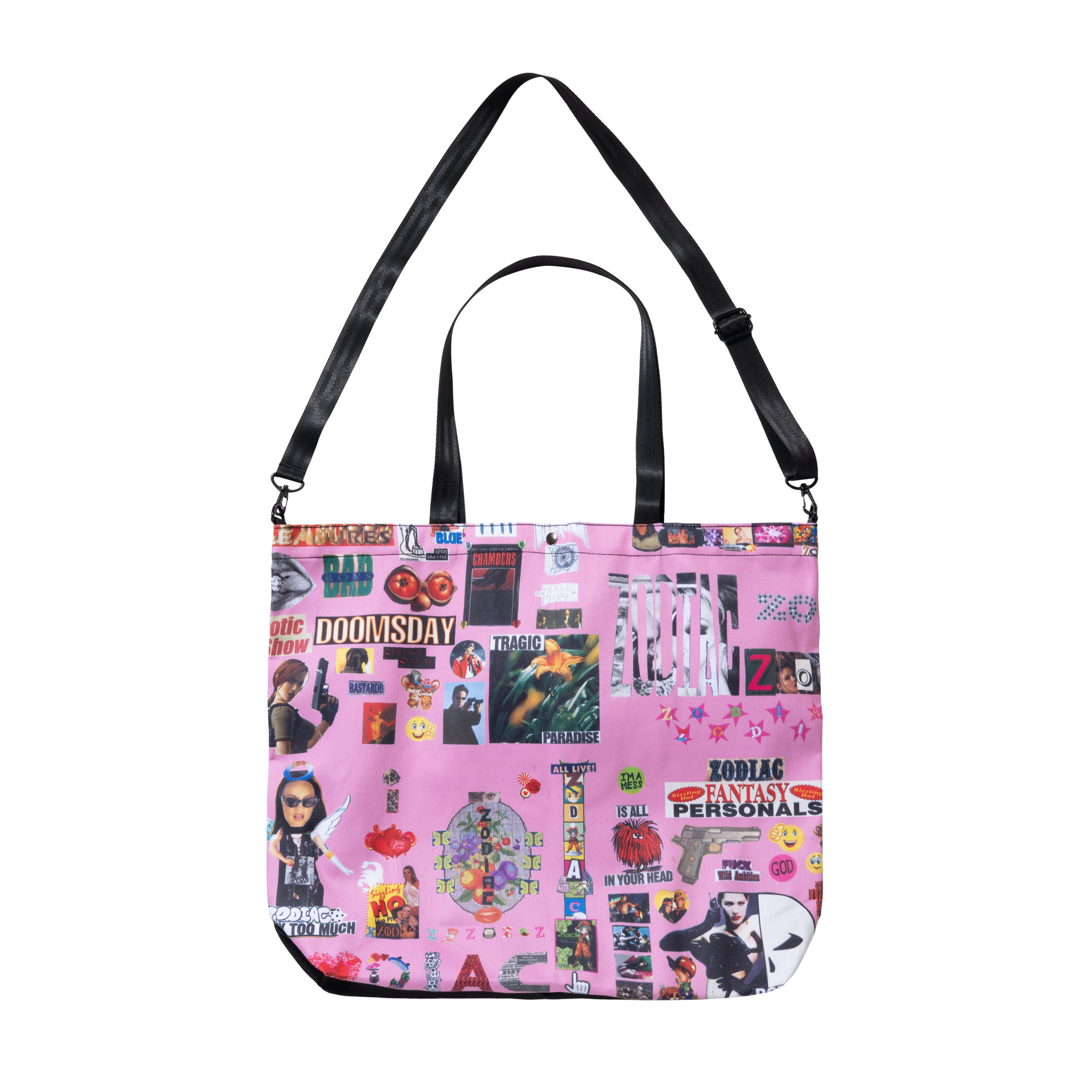 Graphic all over, two handles, snap button closure. Artwork by Indonesian artist Foogazi.