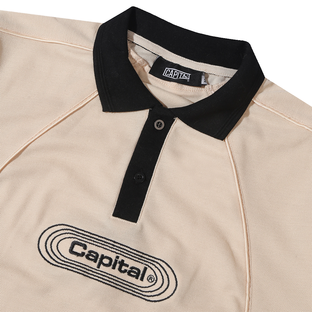 Regular fit, button closure, panel detail, embroidery on the front, flag label on the side.