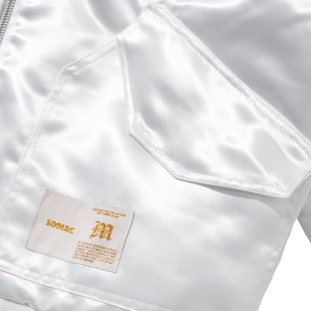 Satin, regular fit, zip closure, graphic lining, pockets on the front, label on the front, zip pocket on the shoulder, ribs on cuff and hem.