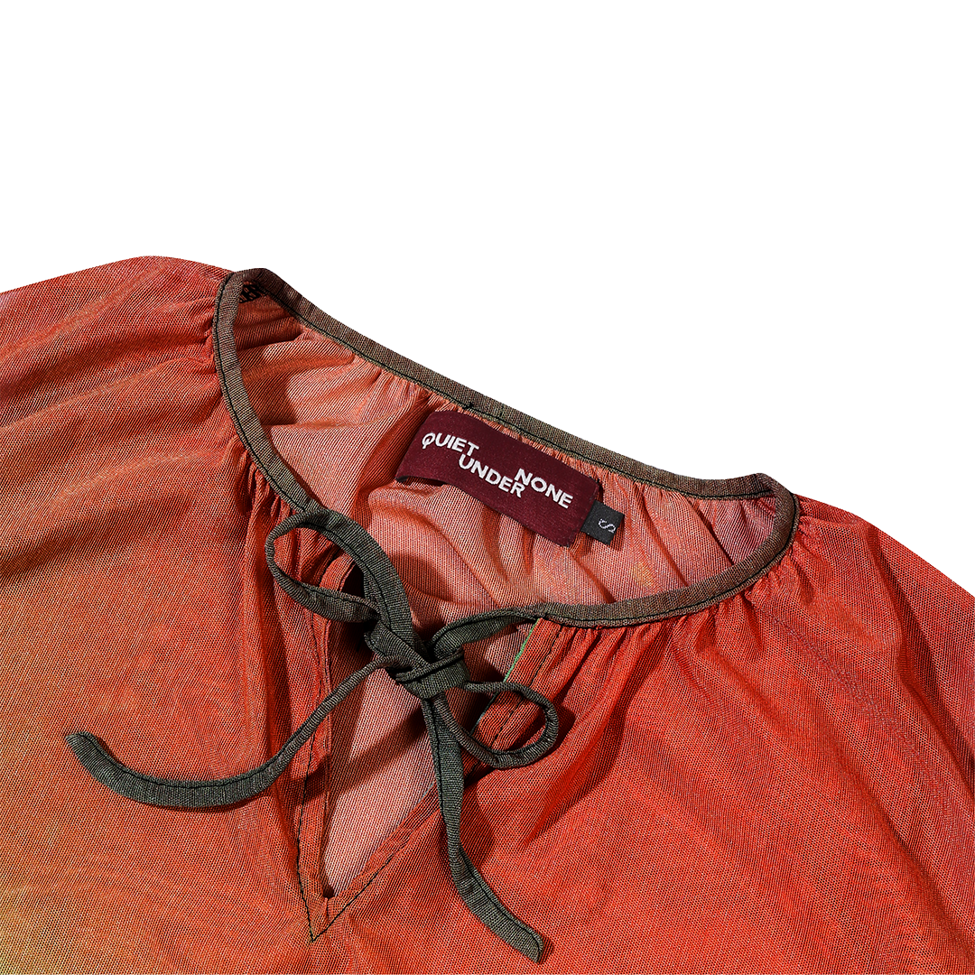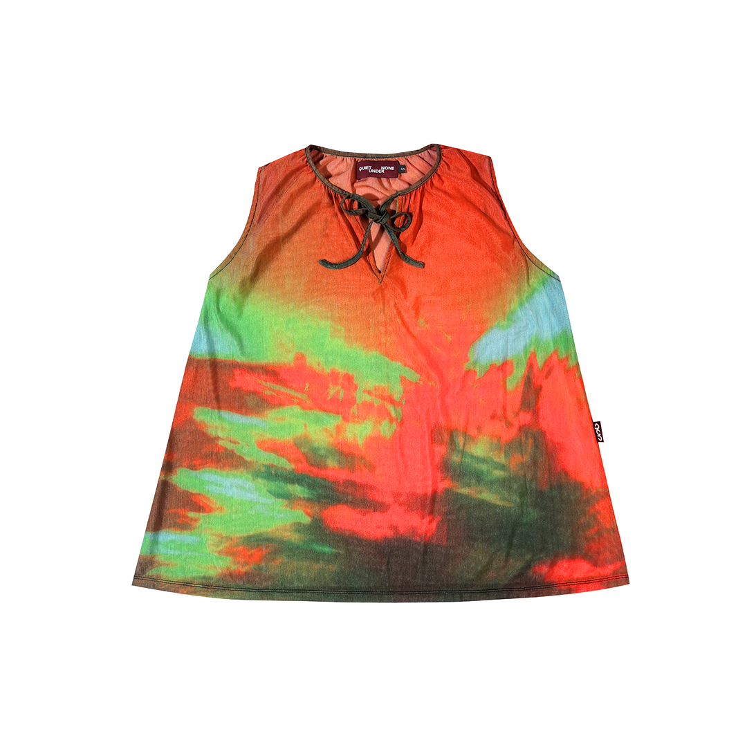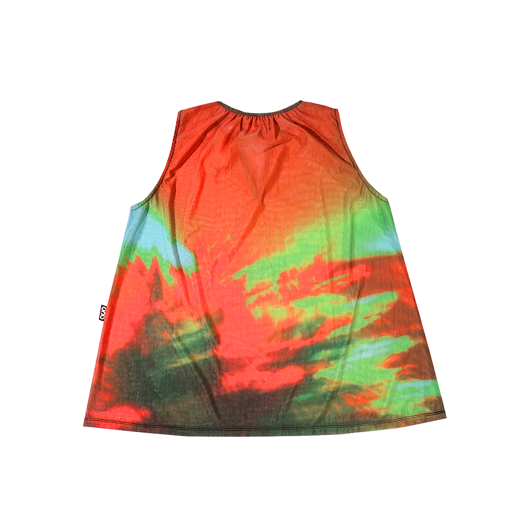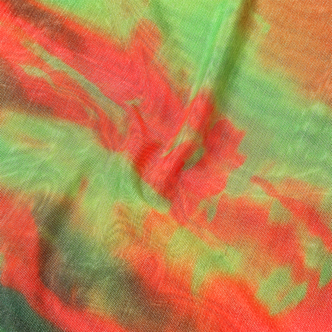 Light nylon mesh, drawstring closure, printed fabric, label on the side.