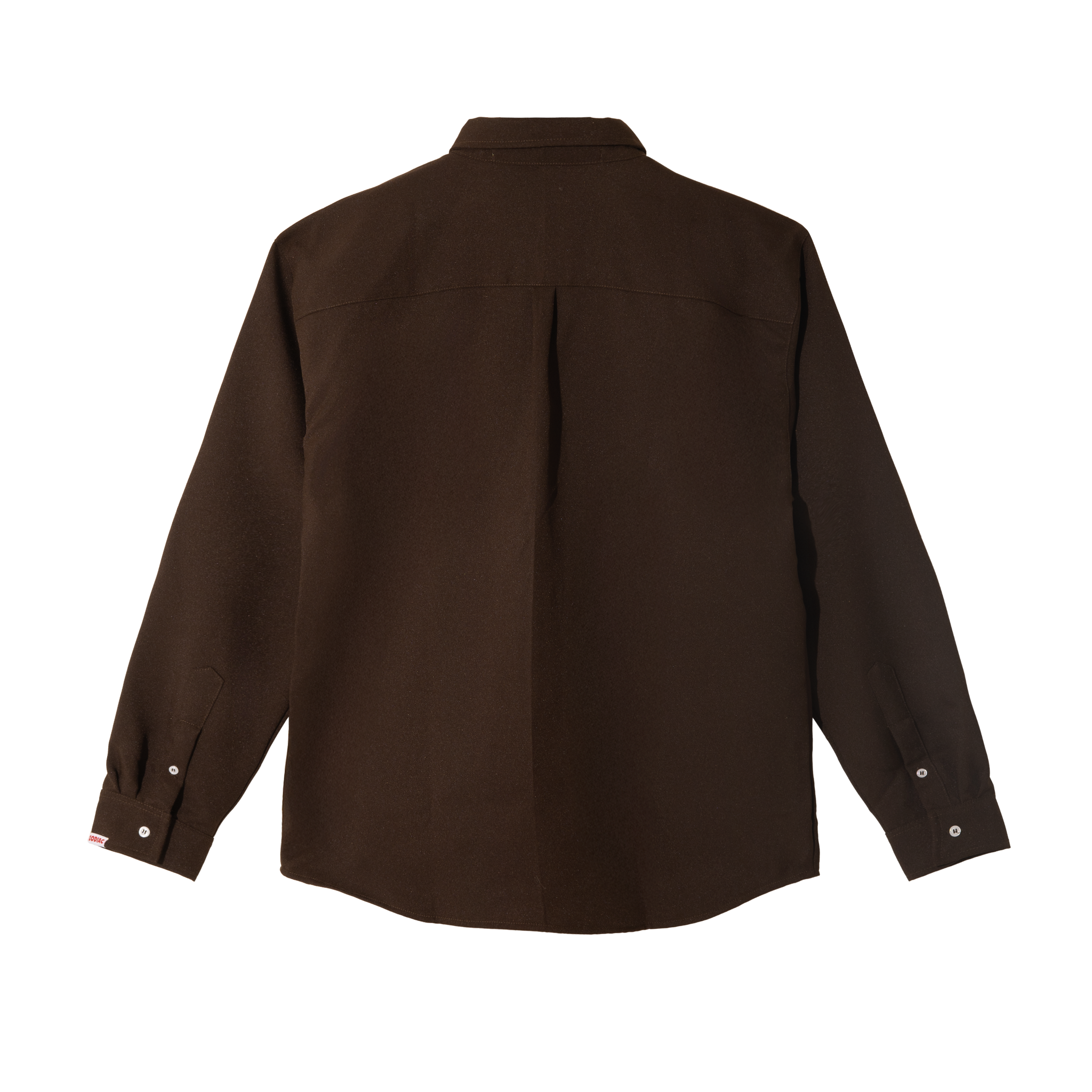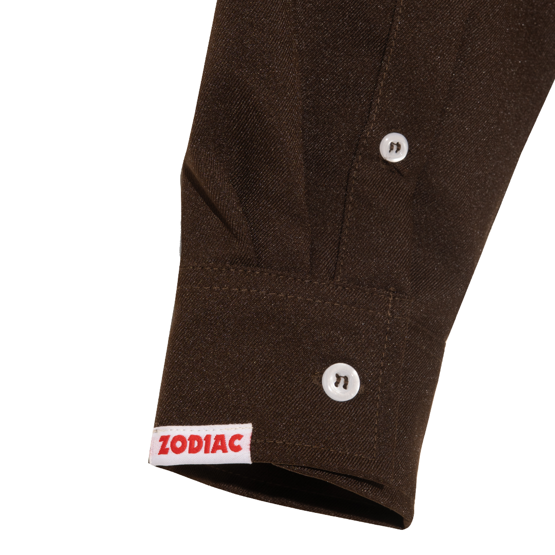 High twist, regular fit, button closure, label on the front and cuff, button on the cuff.