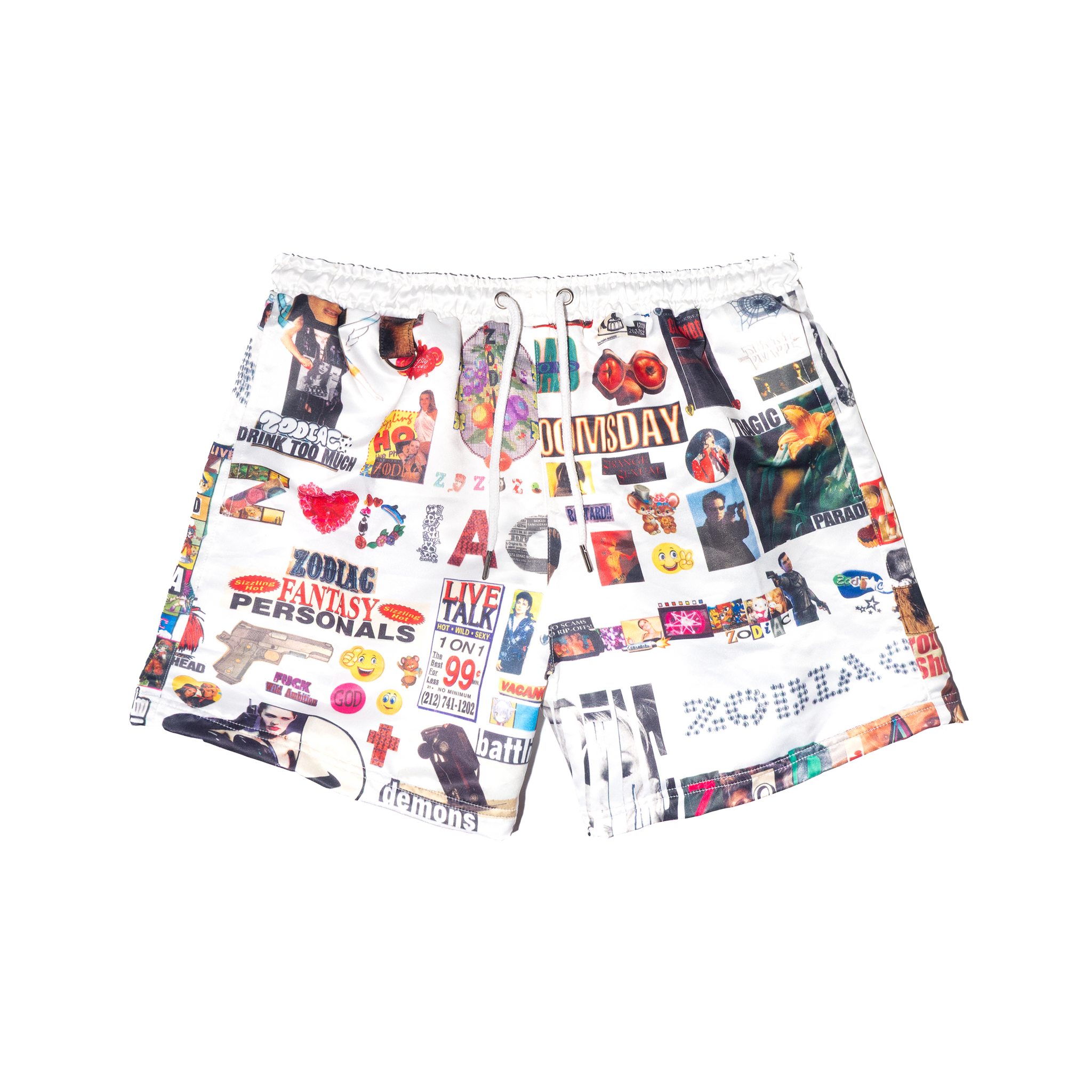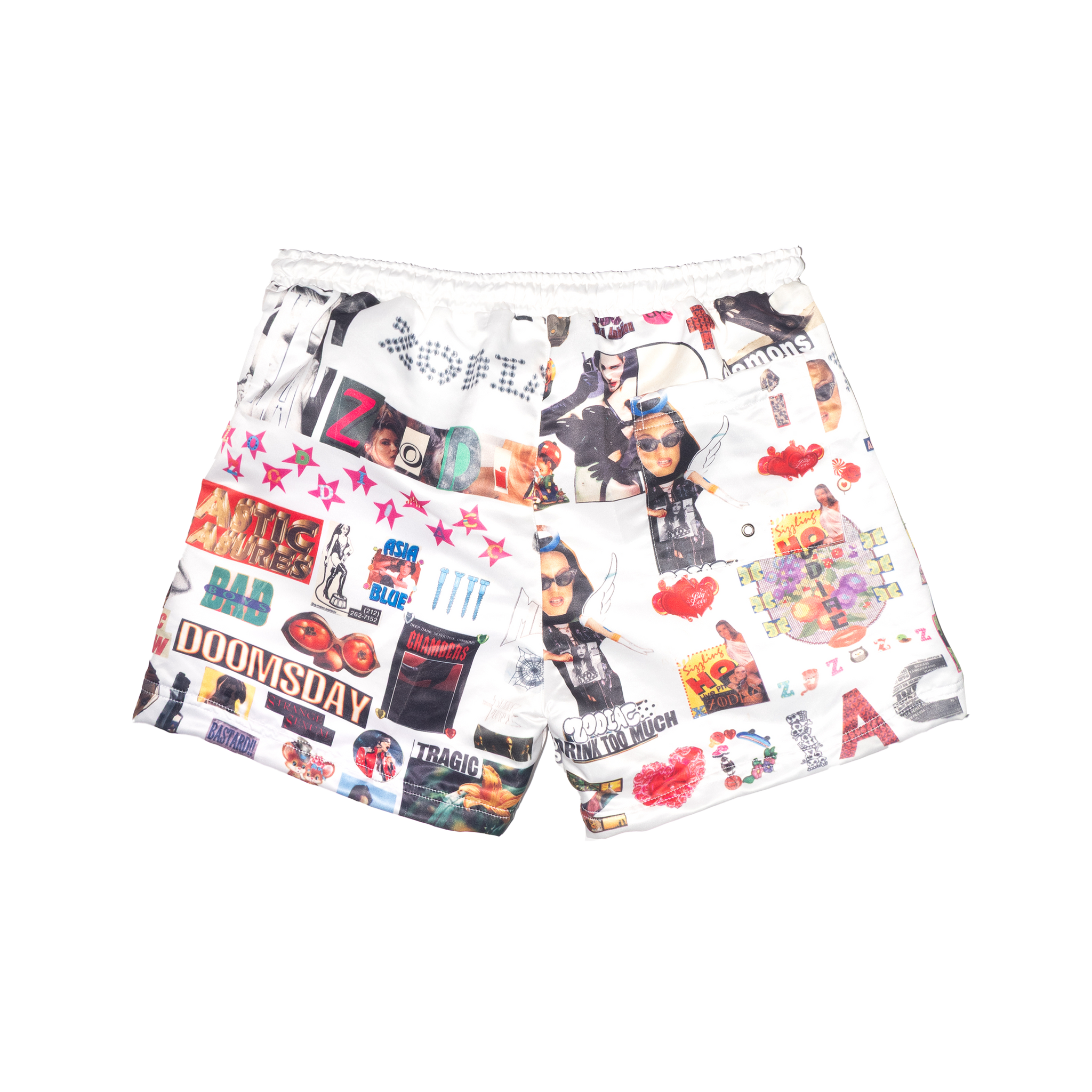 Nylon, regular fit, elastic waist with adjustable drawstring cord, keychain hook on the front, graphic all over, pockets on the side, single pocket on the back with vent. Artwork by Indonesian artist Foogazi.
