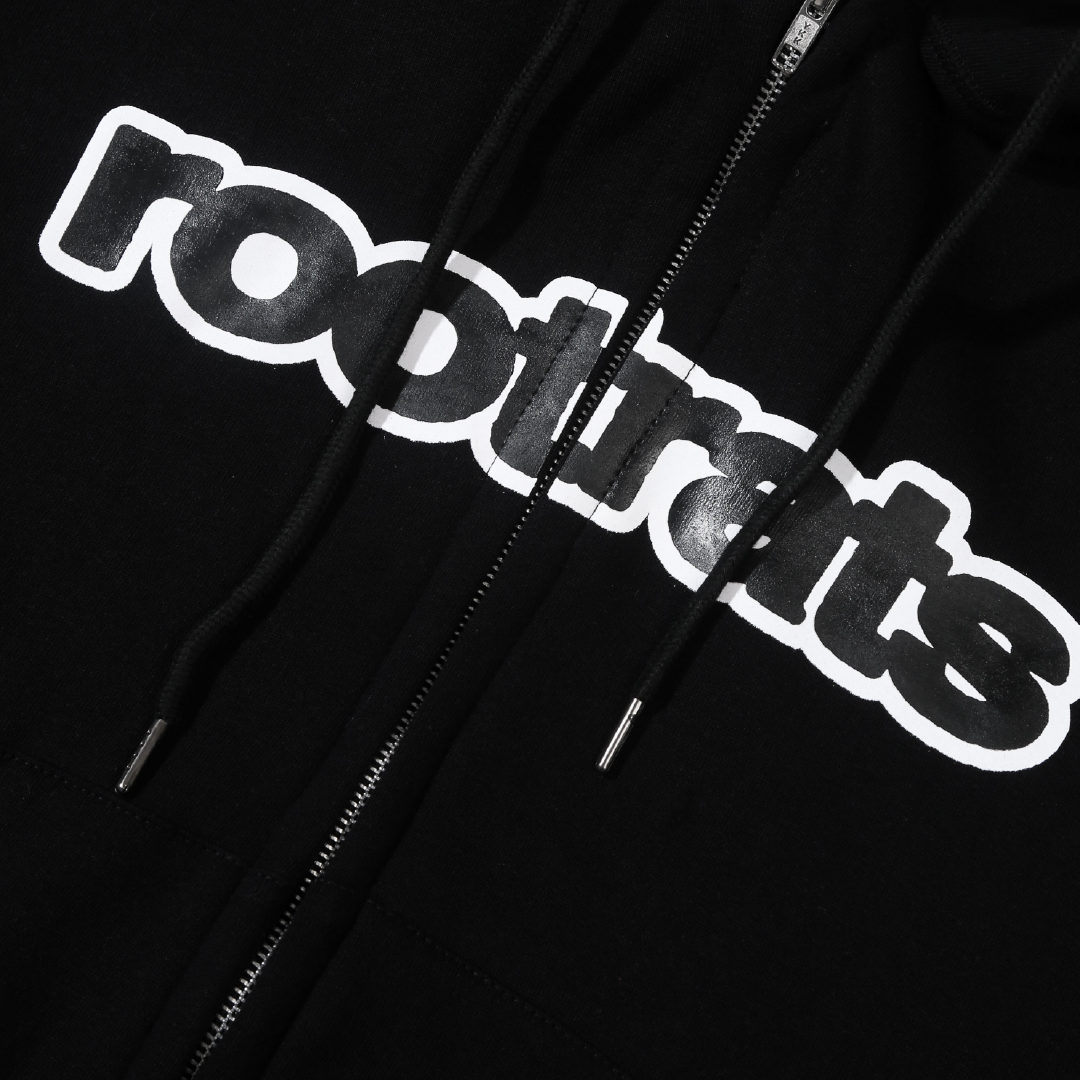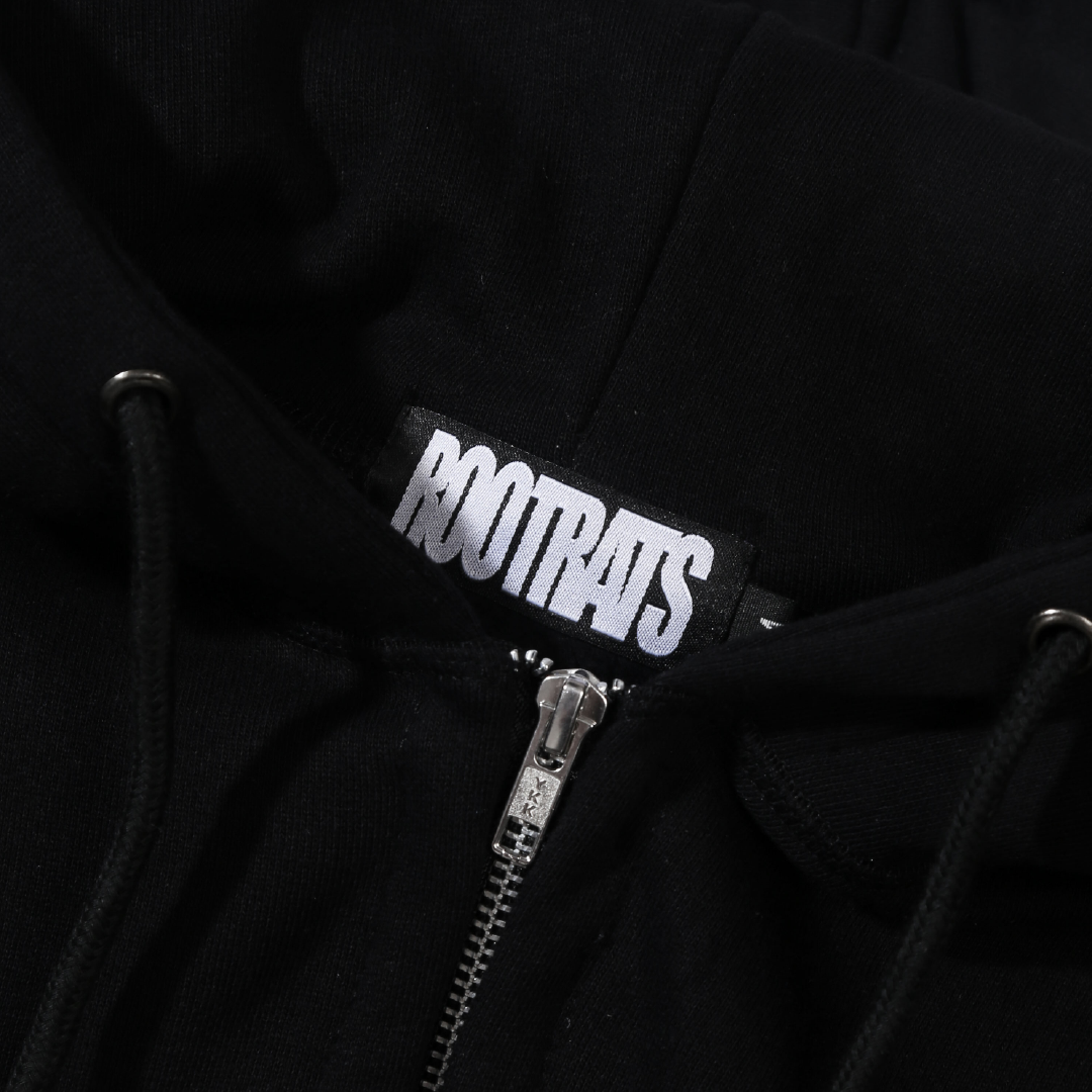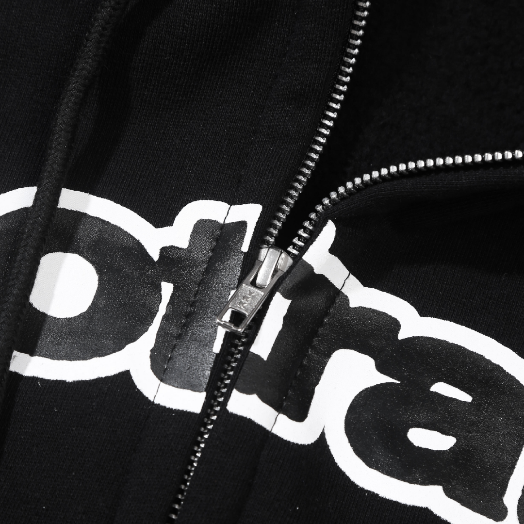 100% cotton, regular fit, zip closure, pockets on the front, adjustable drawstring with hood, rib on the hem and cuff, graphic on the front.